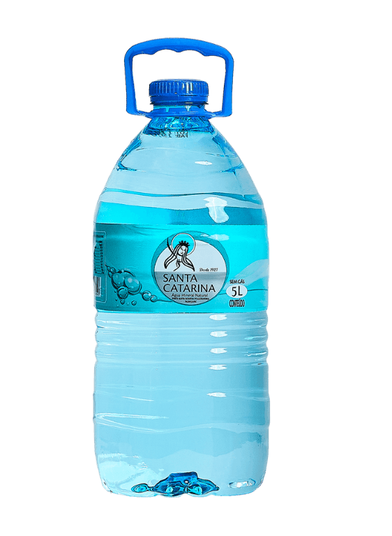 Água Santa Catarina 5L: Por sua fonte estar localizada na Serra do Tabuleiro, área de preservação, apresenta pH7 e elevada concentração de minerais.