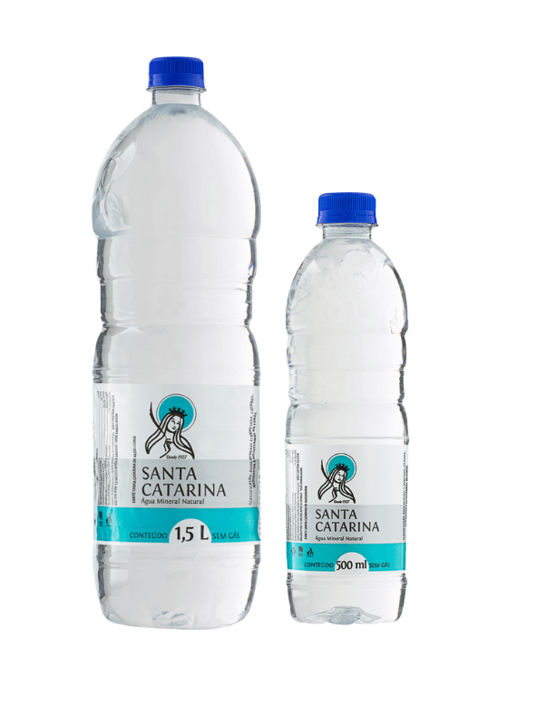 Água Santa Catarina 1,5L e 500ml: Por sua fonte estar localizada na Serra do Tabuleiro, área de preservação, apresenta pH7 e elevada concentração de minerais.